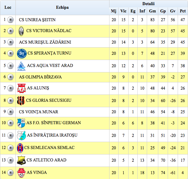 Etapa următoare ( 20-21 mai): Nădlac – Semlac, Turnu – Sînpetru, Aluniș – Aqua Vest, Șeitin – Zădăreni, Munar – Iratoșu. Atletico și Seucusigiu stau pe puncte.