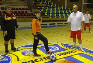 Dacă Monica Brosovszky i-a însoțit pe cei de la Old Boys la mormântul tatălui ei, lovitura de începere a partidei de la Sala Polivalentă a fost dată de Alex, nepotul lui „Gioni”.