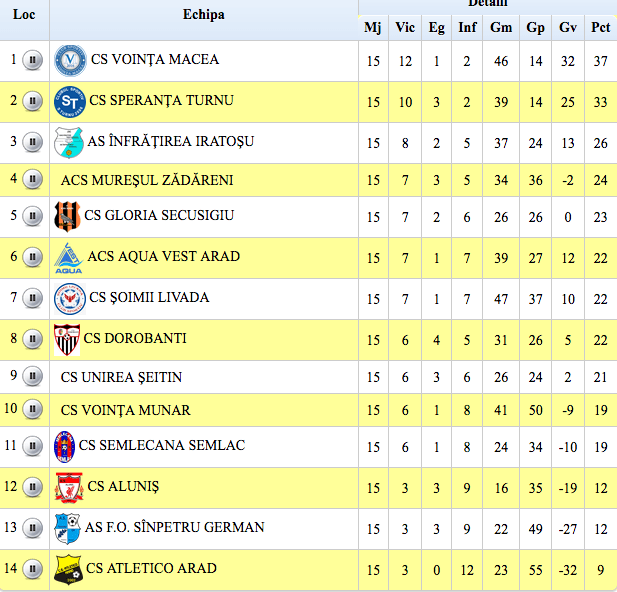Etapa următoare (14-15 aprilie): Aqua Vest – Turnu, Livada – Secusigiu, Semlac – Sînpetru German, Iratoșu – Macea, Șeitin – Munar, Aluniș – Atletico, Zădăreni – Dorobanți.