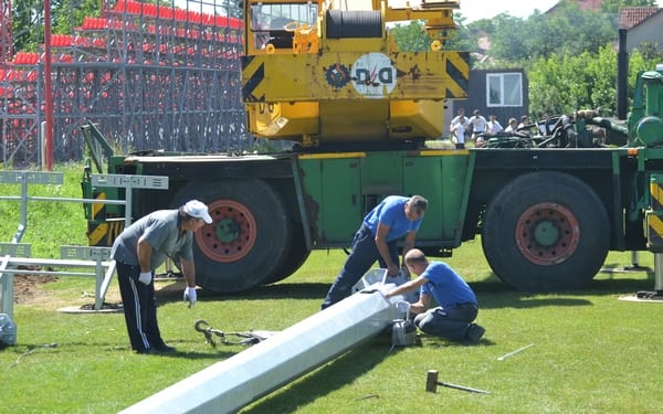 Însă, nu doar firma gălățeană lucrează la „Motorul”. Și timișorenii de la Elba sunt preocupați de montarea celor trei stâlpi de nocturnă ce-și au fundația pe terenul doi al bazei sportive din Aradul Nou. De altfel, jucătorii UTA-ei și-au desfășurat antrenamentul din această dimineață printre mașini, țevi și muncitori de la firma de iluminat. Vă reamintim, însă, că nocturna nu va fi omologată pentru meciurile oficiale, ci e destinată doar antrenamentelor după apusul soarelui și, eventual, meciurilor de verificare.