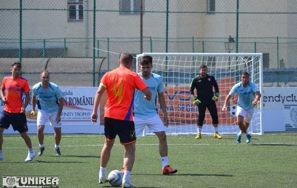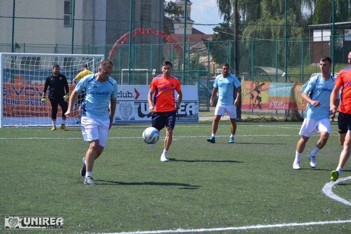 În această dimineață, tot o echipă din Bistrița a stricat debutul arădenilor de la Premiere în Grupa C. Extratereștrii au câștigat cu 2-0 împotriva echipei lui Radu Anca după un joc pragmatic și eficient. Premierul a avut mai mult mingea, dar și ocazii de gol, printre care și două bare lovite de Avrămuțiu și Vlad. În celălalt meci al grupei, Borussia Hermannstadt Sibiu a dispus cu 3-0 de TIV All Stars, în timp ce Luciano Arad va debuta doar în această după-amiază în aceeași grupă C.