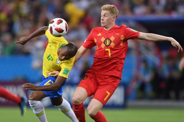 Mijlocaşul ofensiv de 27 de ani a marcat, în minutul 31, cu un şut din afara careului. În afara reuşitei, Kevin de Bruyne a fost un pericol constant pentru defensiva brazilienilor şi a conlucrat la multe faze cu Eden Hazard sau Romelu Lukaku.