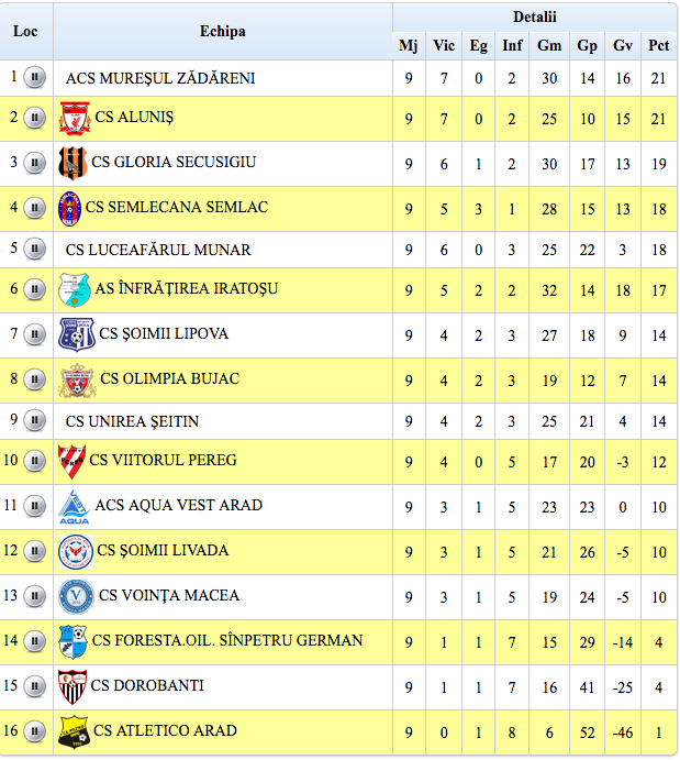 Etapa următoare (20-21 octombrie): Livada – Pereg, Dorobanți – Aluniș, Sînpetru – Munar, Secusigiu – Zădăreni, Semlac – Bujac, Iratoșu – Macea, Șeitin – Atletico, Lipova – Aqua Vest.