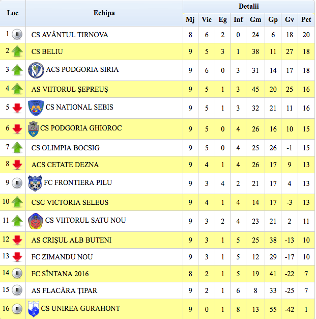 Etapa următoare (20-21 octombrie): Sântana – Seleuș, Ghioroc – Șepreuș, Sebiș – Bocsig, Țipar – Beliu, Buteni – Tîrnova, Dezna – Șiria, Gurahonț – Zimandu Nou, Pilu – Satu Nou.