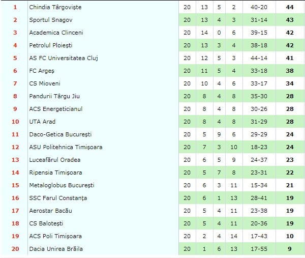 1. usor , usor se triaza bobul de neghina, si vor ajunge pe primele doua locuri cluburile care au investit cel mai mult, adica u cluj si petrolul..aviz pt cei care conduc de la km0 echipa uta..bagati bani daca vreti performanta, dar nu intr-un cerc vicios ca sa se intoarca la voi ,,investitia”..bagati cu adevarat, aduceti jucatori, platiti-i cum se plateste in fotbalul de performanta, si abia apoi alergati dupa ei pe teren daca nu dau randament! performanta pe stomacul gol nu se poate!