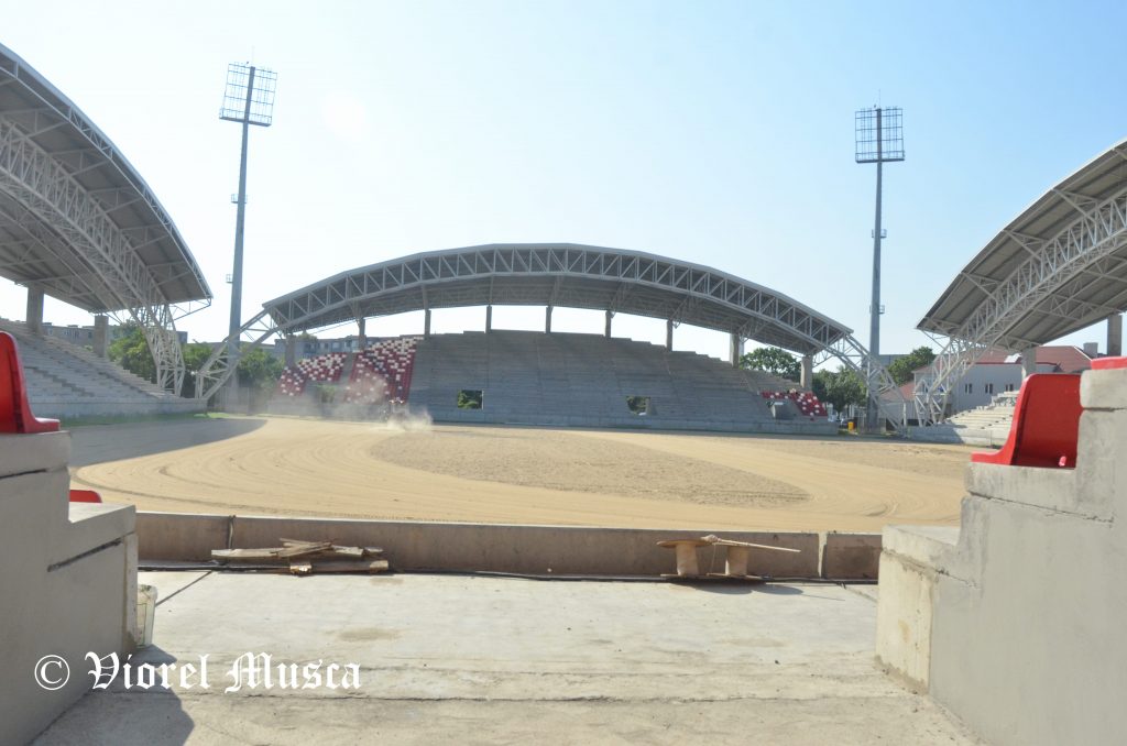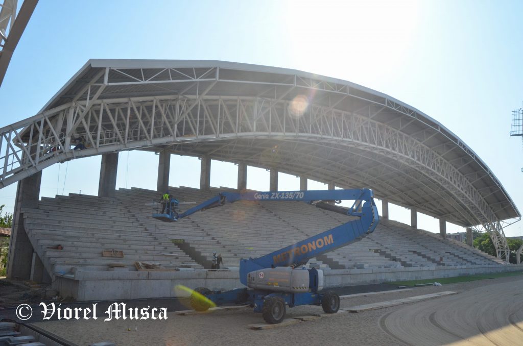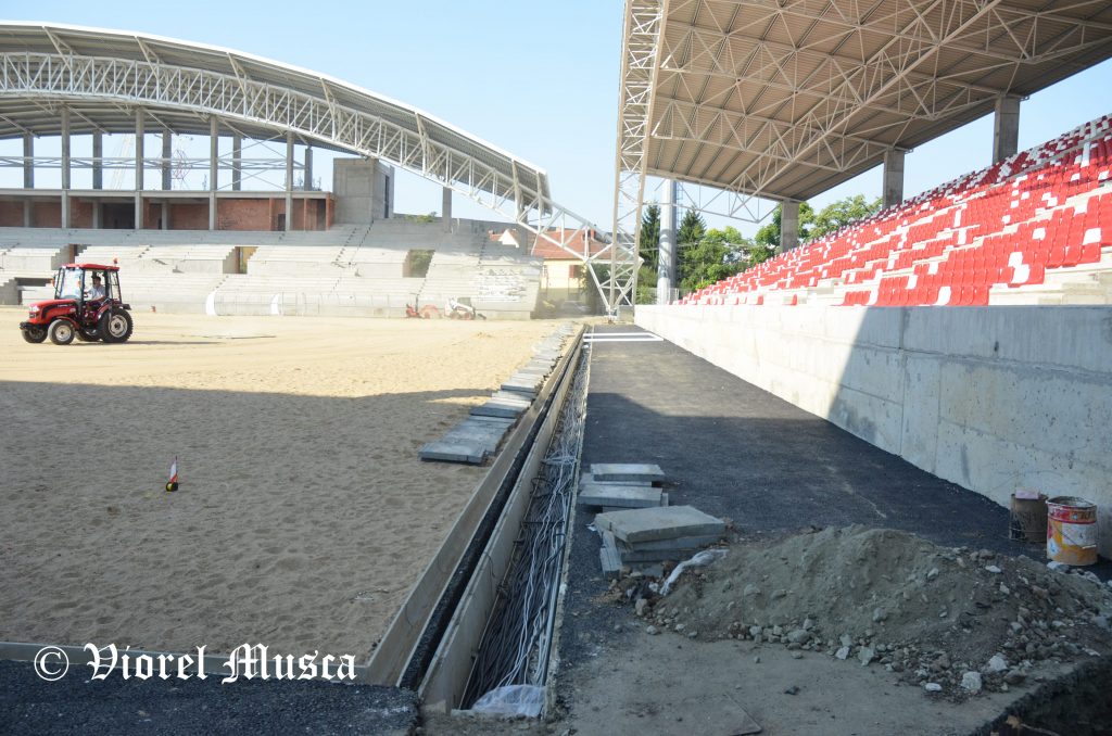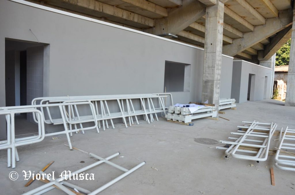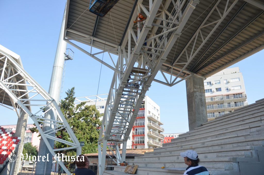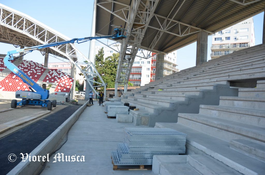Acestea fiind spuse, lucrurile parcă se mișcă mai cu „talent” decât de obicei, lucrându-se chiar pe mai multe planuri la arena din Calea Aurel Vlaicu. Florin Bălan și angajații săi de la Fed Spiel Sport SRL s-au apucat de montarea scaunelor și la peluza sud, cea opusă fiind „îmbrăcată” în totalitate, și va fi gata după 29-30 de zile. În sfârșit, la fața locului au apărut și balustradele ce vor fi montate în marginile celor patru corpuri construite, dar și în interiorul acestora, așa cum prevede proiectul. Mai timid se lucrează și la vestiare și toaletele publice, deși, din informațiile noastre, este una dintre zonele în care se așteaptă noile licitații pentru achiziționarea grupurilor sanitare și electrice pentru finalizarea lor.