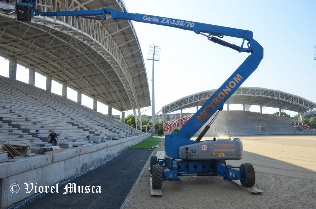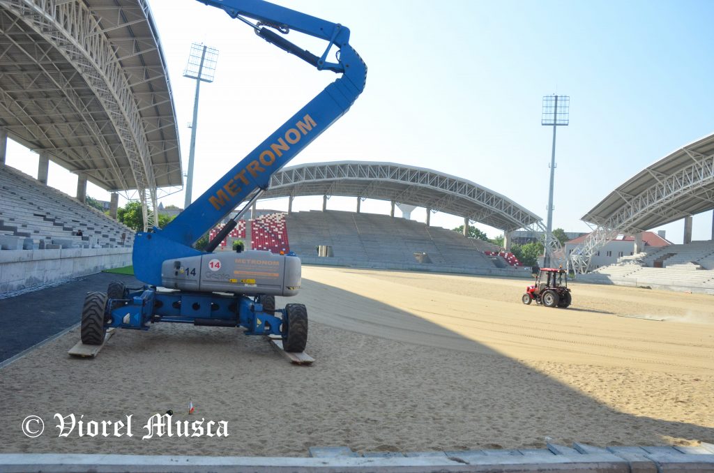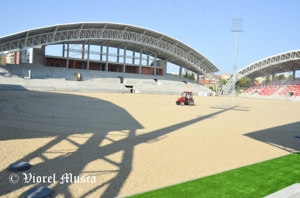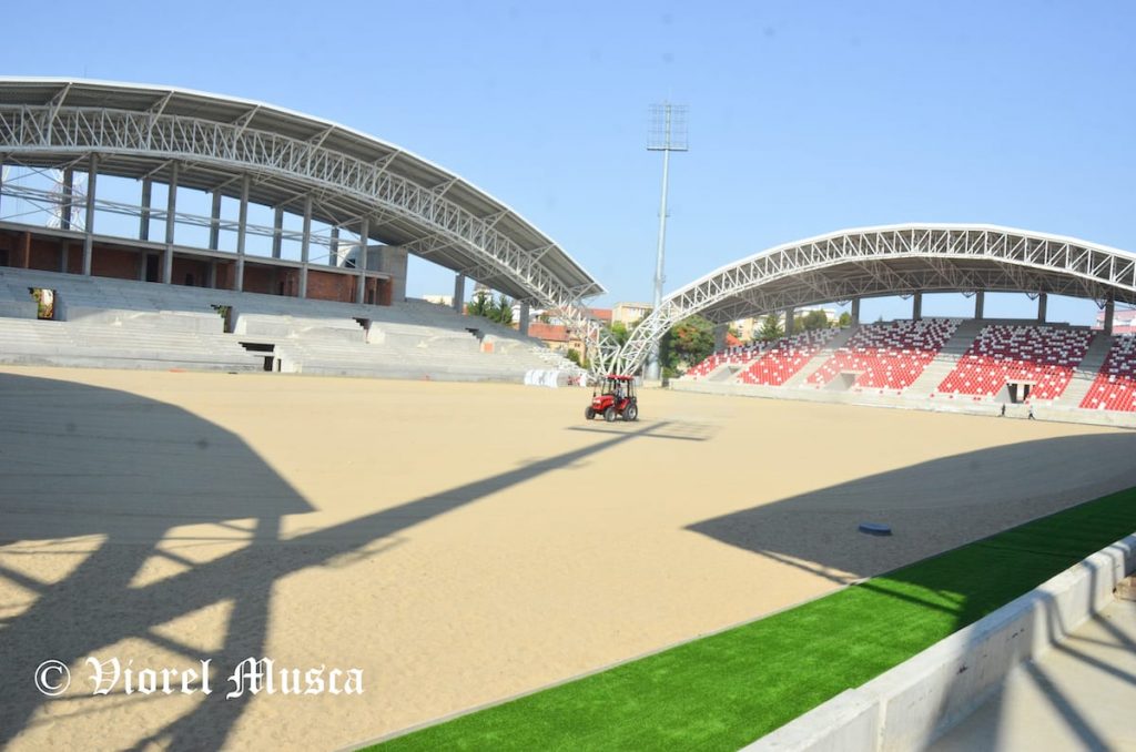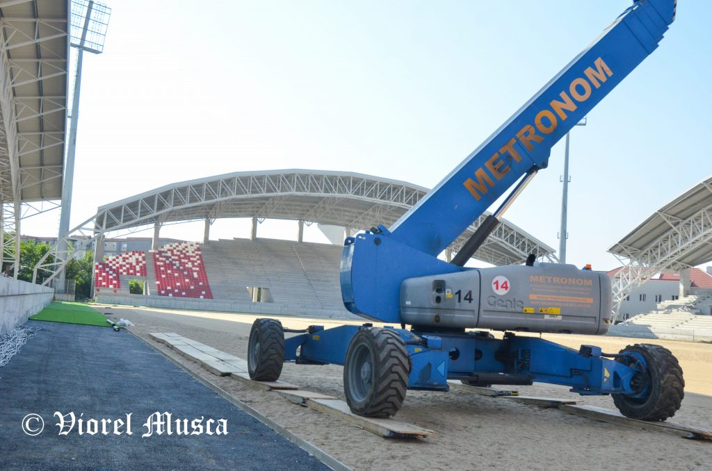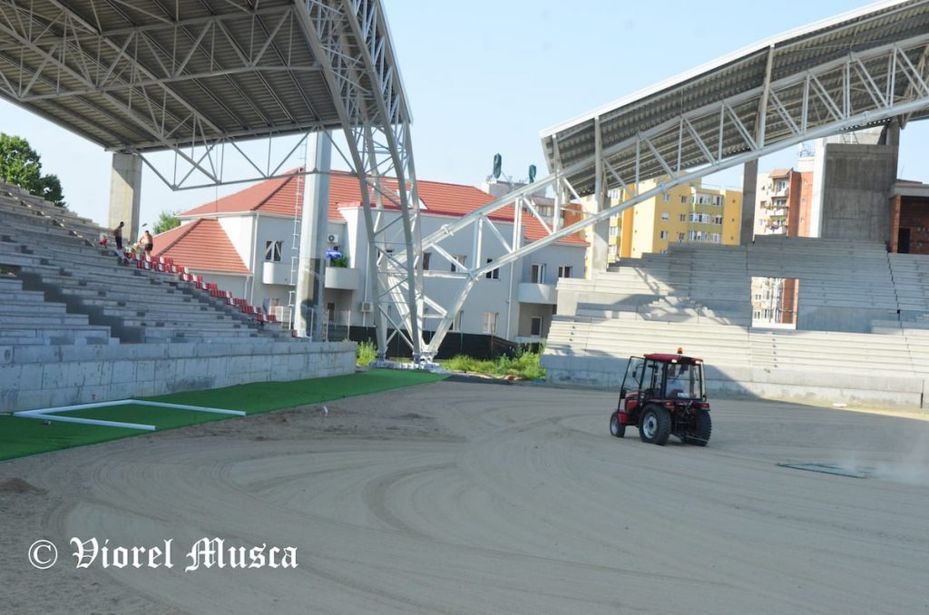 Tot legat de partea electrică, s-a început montarea podului de acces de pe coronamentul tribunelor și peluzelor în vederea fixării instalațiilor de nocturnă. La nivel de gazon se fac ultimele preparative pentru ca firma din Giurgiu să „atace” în sfârșit și partea verde a arenei. Deocamdată, pe margini au apărut doar covoarele sintetice ce delimitează suprafața de joc. Vă reamintim că la începutul acestei săptămâni, primarul Călin Bibarț a afirmat că e chestiune de zile până când caietele de sarcini cu licitațiile pentru lucrările sau achizițiile finale la arena din Francisc Neuman vor fi urcate pe SEAP, menționând – totodată – că se va putea munci și pe timp de iarnă atâta timp cât „obiectivele” nu sunt din beton.
