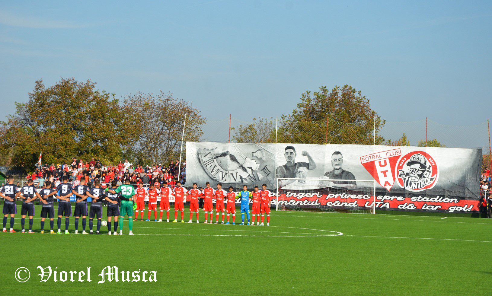 Nimic nu e întâmplător în viață și…dincolo de ea. Țintarul ligii secunde a decis ca la un an de când au plecat din mijlocul galeriei utiste, Bogdan Moisi și Bogdan Mihoc să fie invitați la un derby al Vestului. Pe 25 octombrie 2018 pășeau în mașina morții, mulțumiți de aportul dat pentru coregrafia ce avea să fie afișată pe „Dan Păltinișanu” și au urcat. Din Cer și-au ațintit privirea și și-au conectat inimile cu suflarea „roș-albă” de pe „Motorul” într-o zi frumoasă de toamnă, precum pasiunea lor pentru „Bătrâna Doamnă” a fotbalului românesc. Era zi de derby, nu puteau lipsi, iar UTA se luptă pentru promovare. Nu au mai prins gestiunea lui „Gyuszi” Balint, când – în sfârșit – lucrurile merg ceas. Pentru ei ceasul a fost nemilos, s-a oprit în acea seară blestemată, sub podul Micalaca. Camarazii nu-i uită și-i plâng și astăzi, iar din durerea lor s-a născut coregrafia cu Poli. Cei doi Bogdani zâmbesc, la o bere. Doar ceasul e implacabil, s-a oprit la 20 și 20. Mesajul mișcă orice utist, din teren sau din tribune: ”Din cer, doi îngeri privesc spre stadion / Și zguduie pământul când UTA dă iar gol”. Iar căpitanul echipei a dat gol în urmă cu an, a dat și astăzi, pentru victoriile cu Poli. Nimic nu e întâmplător în viață.