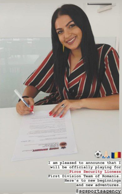 În ultimul sezon a bifat 22 de apariții pentru Chrysomilia Agios Amvrosiou Kerinias, pentru un total de 1962 de minute, trecându-și în cont și patru goluri. ”După 6 ani în echipa Chrysomilia Agios Ambrosios Kyrenia e timpul să plec. Mă simt foarte norocoasă că am luptat într-o echipă atât de frumoasă, pentru toate bucuriile și tristețile pe care le-am împărtășit, pentru toate momentele de agonie, râs, dezamăgire, dar mai presus de toate momentele de umanitate. Mi-am dăruit inima și sufletul încercând să mențin vie flacăra acestei asociații de refugiați care reprezintă Kyrenia noastră. Mă despart doar de oamenii autentici și pozitivi care mi-au fost alături și m-au susținut în fiecare moment. Și mă desparta de antrenorul meu, care este ca al doilea tată, care nu a încetat să creadă în mine, dar și de președintele și toți ceilalți membri ai acestui club care au fost alături de noi în fiecare minut! Precum și de colegele mele de echipă care mi-au tolerat dansul, tachinarea și care sunt alături de mine în această nouă provocare. Cu cât mă bucur că un alt vis de-al meu a devenit realitate, cu atât mai mult îmi pare rău că plec din echipa mea. Dar plec cu capul sus și demnitate. Am onorat tricoul și lam luptat pentru Kyrenia noastră” – e mesajul postat de noua fotbalistă a formației arădene.