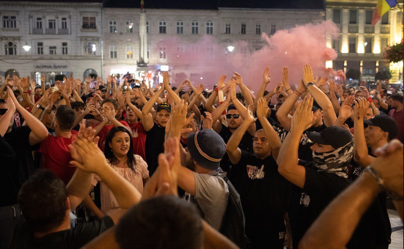 După fluierul de final al partidei din Trivale, suporterii au început să se adune pe platoul din fața Primăriei pentru a sărbători promovarea „Bătrânei Doamne”. Autoturismele și taximetrele ajung unul după altul la kilometrul zero, la această oră fiind deja aproximativ 500 de fani care scandează pentru echipa lui Laszlo Balint, care a îndeplinit visul unui oraș greu încercat din punct de vedere fotbalistic. UTA va juca din nou în Liga 1 după 12 ani de zile!