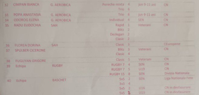 2. Vlăduț Popa (gimnastică aerobică – juniori 15-17 ani) – Locul 1 Aerobic Dance, locul 2 Trio, locul 2 Echipe (Campionat European); Locul 2 Aerobic Dance, locul 7 Individual (Concurs Mondial); Locul 1 Trio, locul 1 Aerobic Dance, locul 2 Individual (Campionat Național)