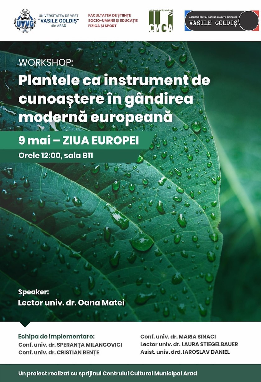Workshop-ul „Plantele ca instrument de cunoaștere în gândirea modernă europeană” a fost suținut de doamna lector dr. Oana Matei și finanțat printr-un proiect câștigat la Centrul Municipal de Cultură Arad.