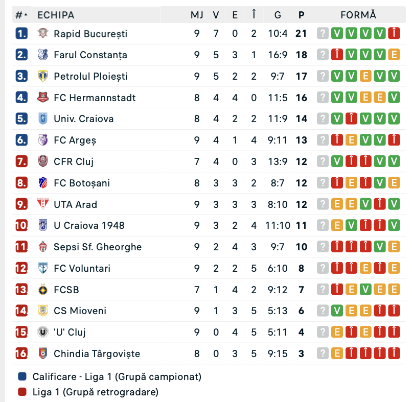 Superliga, etapa a 9-a: U. Craiova o întoarce spectaculos pe Farul, Hermannstadt rămâne singura echipă neînvinsă!