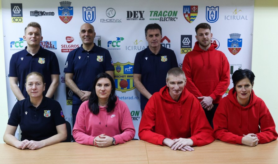 La FC Best Arad Zsiga Bobroczky este ajutat de antrenorii Brunhilde Bobroczky și Vali Marian, iar tehnicienii Academiei de Baschet Arad sunt Bianca Drăguș-Urban și Adam Kovacs, coordonați de Gabriel Iazbinscky.
