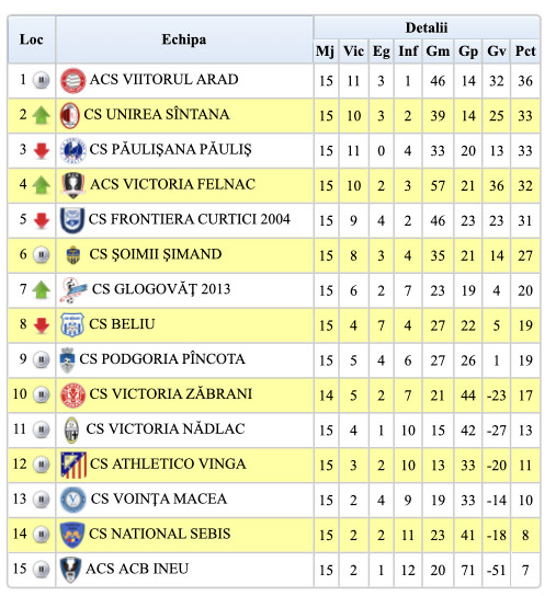 Campionatul Ligii a IV-a Arad s-a reluat cu multe rezultate surprinzătoare. Trei dintre echipele din Top 5 au pierdut puncte și doar una în meci direct – Păulișul, după eșecul de Felnac. În rest, puțină lume ar fi pariat pe remizele celor de la Viitorul și Curtici cu Glogovăț și Sebiș. Așadar, beneficiarele rundei cu numărul 16 au fost Sântana și Felnac, Unirea venind chiar pe locul 2, înainte de „ciocnirea” cu liderul.