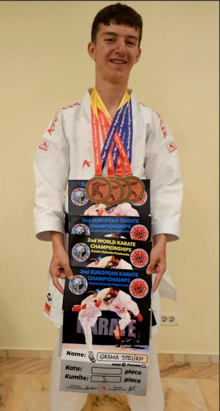 Sportivul legitimat la Katana Karate Club a urcat de trei ori pe podium, la categoria cadeți (+ 60 de kilograme). Grama a luat „aurul” în proba de kumite sport, „argintul” în proba de kumite și „bronzul” în proba de kobudo.