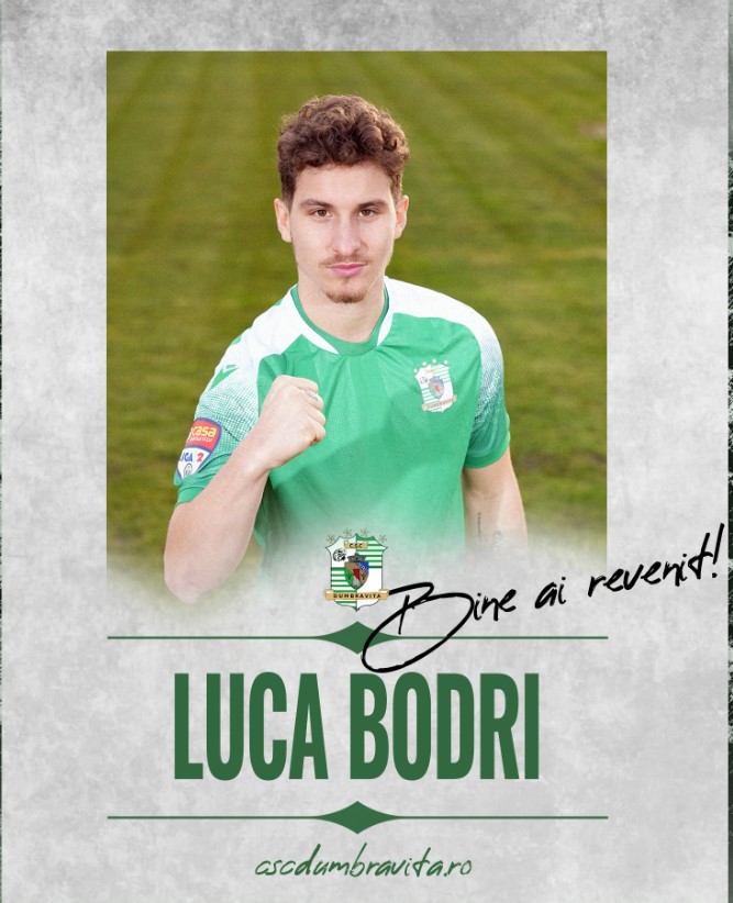 Prin urmare telefonul de la Dumbrăvița a sunat din nou, iar el a răspuns fără să stea pe gânduri. Luca Bodri mai evoluase în tricoul „alb-verde” între 2021 și 2023. În sezonul promovării istorice a Dumbrăviței în eșalonul secund a marcat 6 goluri în 28 de apariții, după care, în primul campionat de Liga a 2-a disputat de trupa de Cosmin Stan a înscris o singură dată în 21 de jocuri.