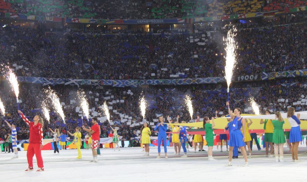 Ceremonia de deschidere a EURO 2024 a inclus, printre altele, o paradă a steagurilor fiecărei națiuni participante la acest turneu final, la fel ca la alte competiții de renume internațional, precum Eurovision sau la Jocurile Olimpice. De asemenea, persoanele aflate în centrul spectacolului au creat mai multe efecte vizuale, care i-au încântat pe cei aflați în tribunele stadionului din Munchen.
