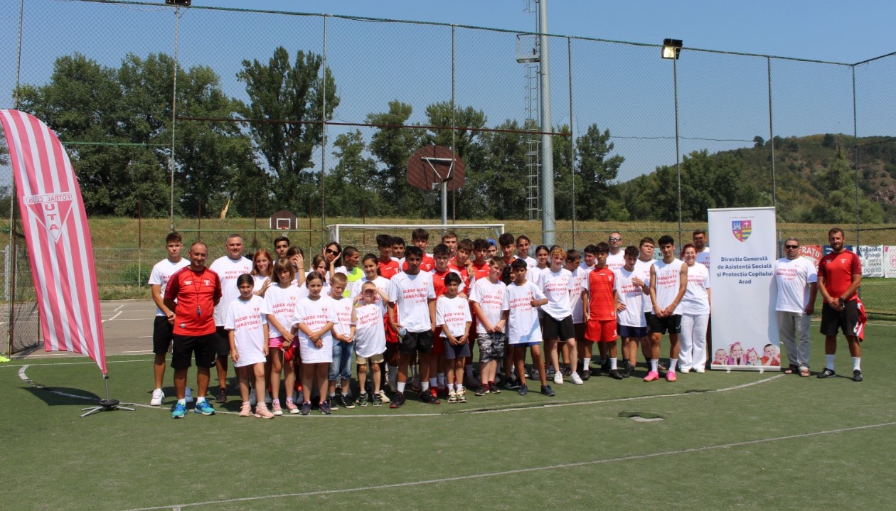 Fotbaliștii Academiei UTA i-au atenționat pe copiii din casele de tip familial din Lipova: ”Alege viața sănătoasă, te bagi?” + FOTO