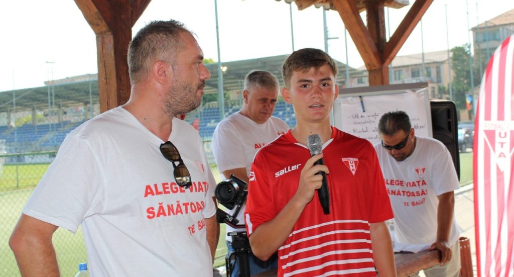 Le-au vorbit copiilor despre importanța unei vieți sănătoase, fără substanțe periculoase, țigări, alcool sau băuturi energizante, Erika Stark, directorul general al DGASPC, Răzvan Cadar, vicepreședintele Consiliului Județean Arad, dar și Flavius Moisă, antrenor-metodist din cadrul Academiei UTA. „Ne dorim din suflet ca prin aceste acțiuni, copiii care nu au avut norocul unei vieți ca noi toți să conștientizeze pericolele ce-i pândesc la tot pasul. Clubul UTA le oferă exemplul sportivilor noștri, adică ce înseamnă disciplina unui fotbalist și mai ales stilul de viață sănătos după care funcționează. Alimentație, sport, școală, odihnă. În special datorită anturajelor e ușor să o iei pe căi greșite, sperăm ca mesajul nostru: <<Alege viața sănătoasă, te bagi?>> să ajungă la cât mai mulți copii din județ și municipiu. Le mulțumim partenerilor noștri, DGASPC, CJA, dar și sponsorilor, cu mențiunea că așteptăm și alții alături de noi”, ne-a mărturisit Zsolt Nagy.