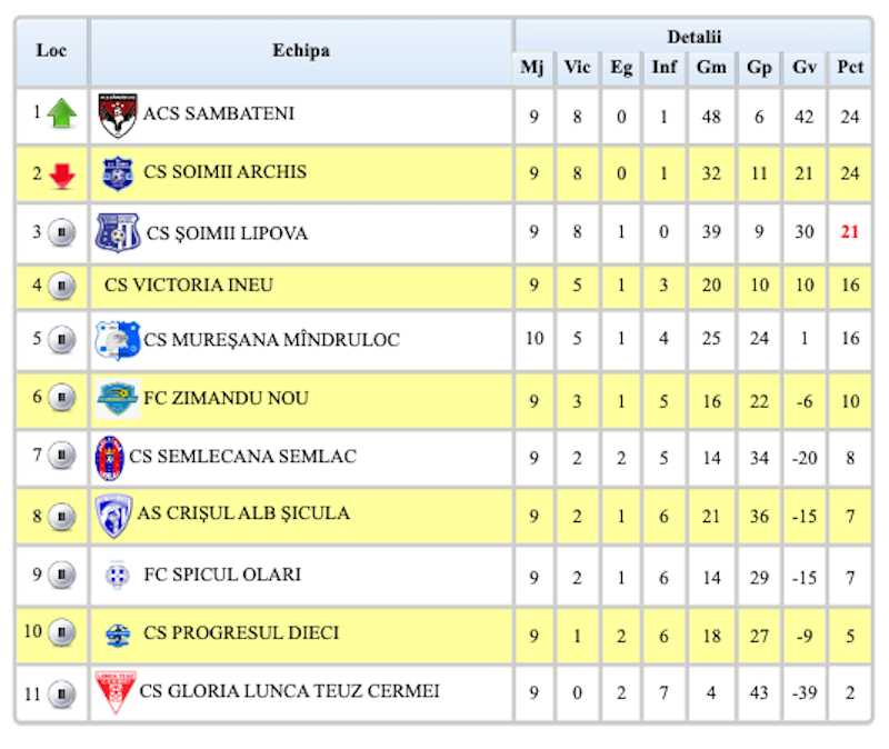Liga a VI-a Arad, etapa a 10-a: Lipova a câștigat duelul „șoimilor” și le-a făcut loc vecinilor din Sâmbăteni în fotoliul de lider!