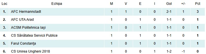 Clasamentul Grupei C după prima etapă