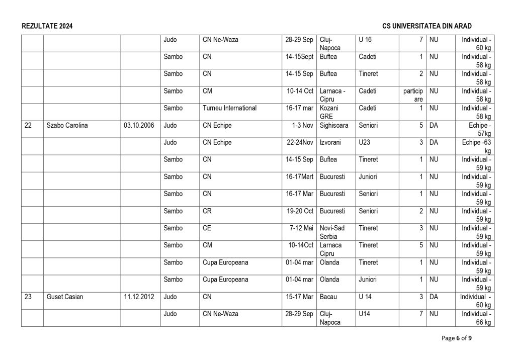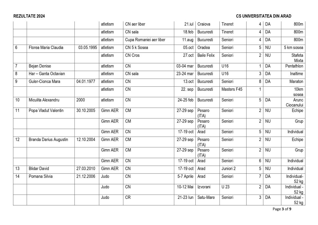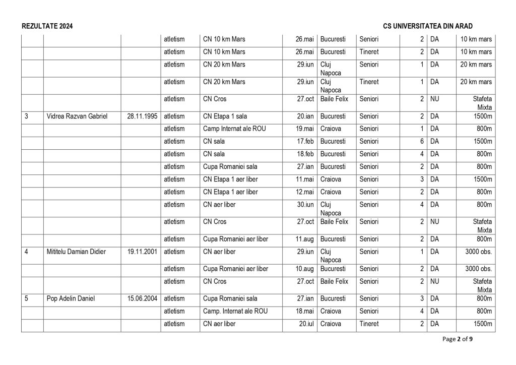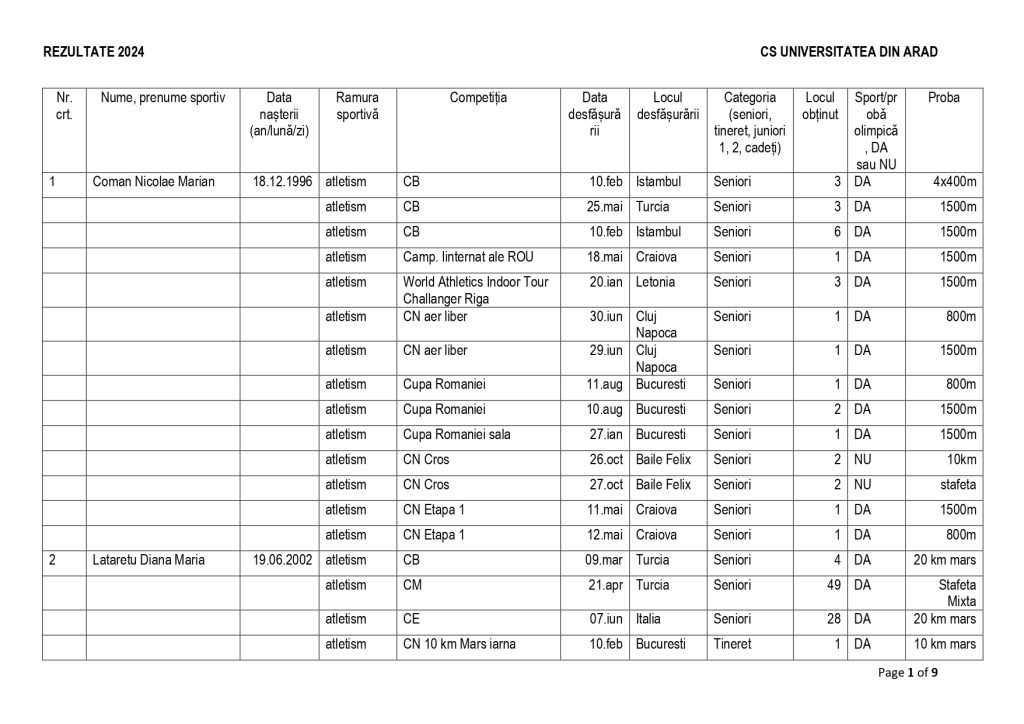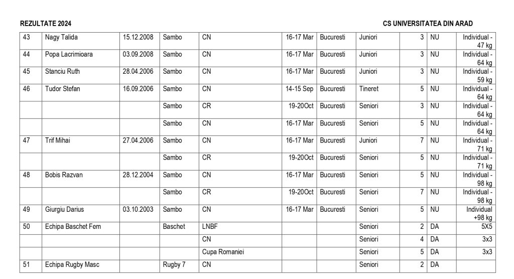 Rezultatele complete ale sportivilor CS Universitatea în anul 2024