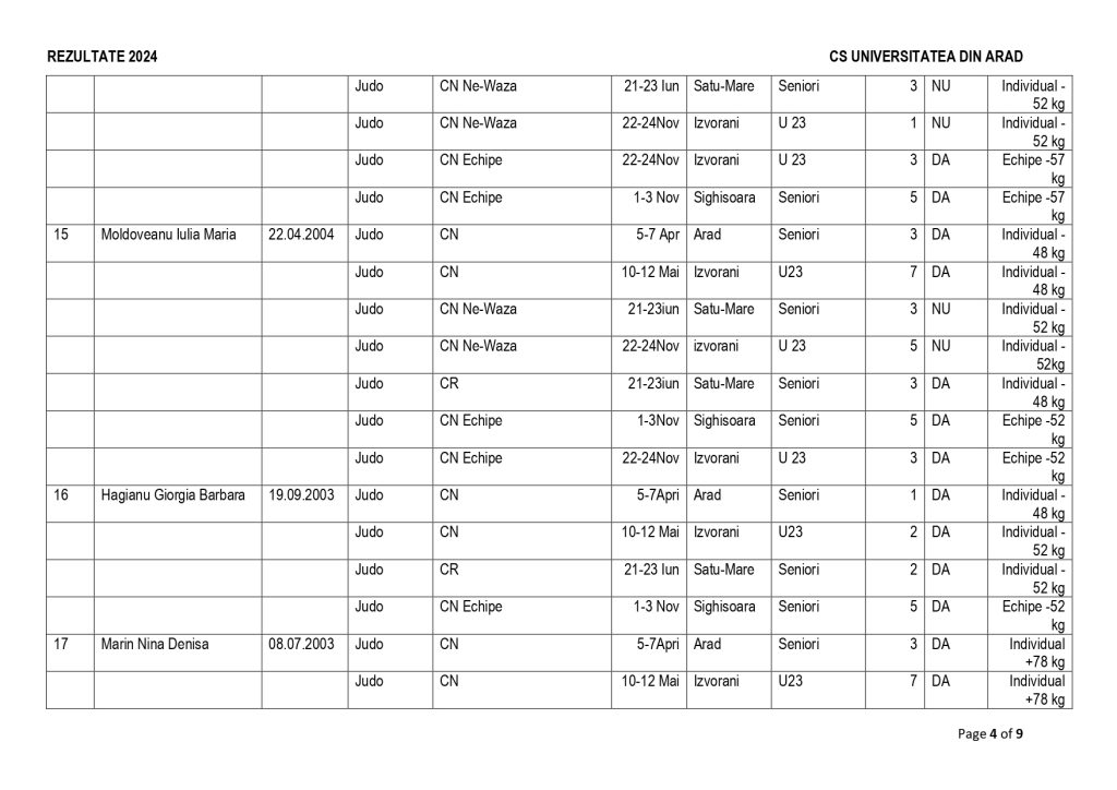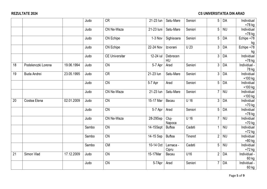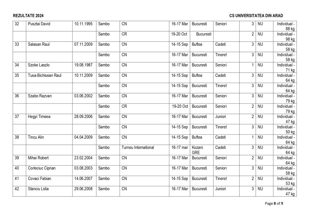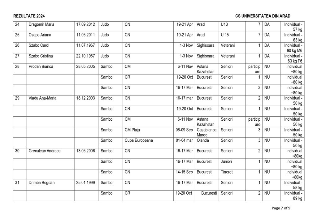 Rezultatele complete ale sportivilor CS Universitatea în anul 2024