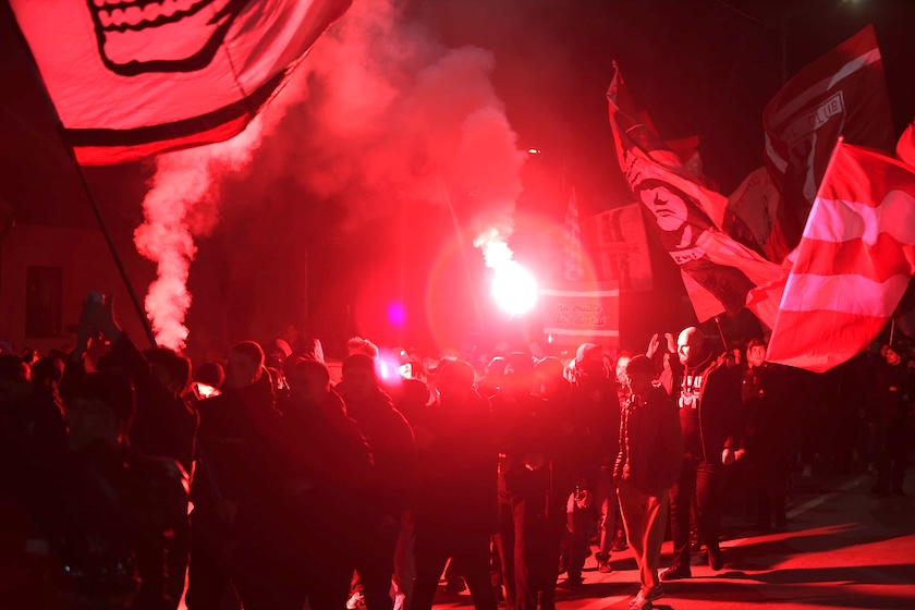 In loc de bani risipiti pe torte si fumigene,mai bine pe niste tobe care sa se auda pana acasa la Bibart sau Falca..Nu stiu din ce isi faceau tobele galeriile vechi dar rasunau foarte puternic