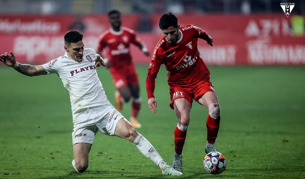 UTA: Gorcea – Tsouka, Conte, Poulolo, Dussaut – Trif, Mihai – Danciu, Costache, Omondi – Zsori. Rezerve: L. Roșu – Hrezdac, Mabea, Ghezali, Râpă, Harrison, Van Durmen, Hodoșan, R. Cristea, Dragoș, Matei. Antrenor: Mircea Rednic