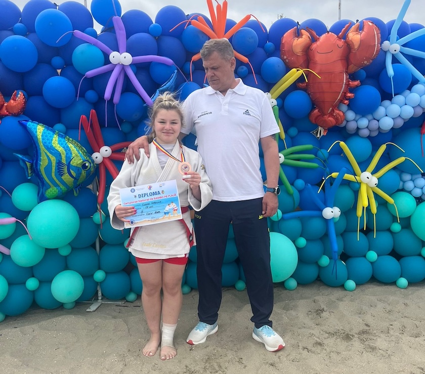 Pe plaja de la Constanța, în weekend, s-au dat medaliile la Campionatul Național de Sambo pe Plajă. Vorbim despre competiția seniorilor, câștigată de doi dintre sportivii de la CS Universitatea Arad. Daniel Natea a devenit campion național la categoria +88 kg, iar Bianca Prodan, la categoria +72 kg. Pe podium au mai urcat Ana Maria Vladu (categ. 50 kg), cu o medalie de argint, dar și Carolina Szabo (categ. 59 kg) și Ciprian Vlădescu (categ. 88 kg), cu câte o medalie de bronz. Au ratat de puțin podiumul, Andrei Oprișor (categ. +88 kg) și Ștefan Beleț (categ. 88 kg), cu două locuri 5.