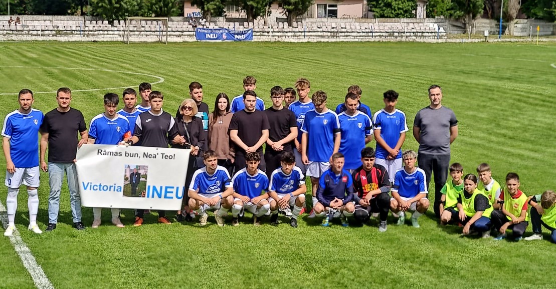 Jucătorii antrenați de Flavius Sabău, Teodor Mihuț și Marcel Ponta au intrat pe teren cu un banner, cu mesajul ”Rămas bun, nea’ Teo!” Pe gazonul de pe „Central” au pășit și fiica și cei doi nepoți ai lui Teodor Jușcă. „Inima albastră” a fotbalului ineuan a decedat pe 24 mai, la vârsta de 75 de ani și a fost înmormântat marți.