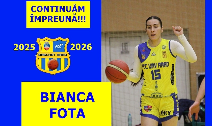 Așadar, Fota va evolua pentru FCC Baschet UAV Arad și în stagiunea 2025-2026. Jucătoarea de 30 de ani a evoluat în 12 partide din Liga Națională în „galben-albastru”, cu medii de 5,4 puncte, 1,4 recuperări, 1,4 pase decisive și 1,2 intercepții, cu 5,4 eficiență în 15:49 minute.