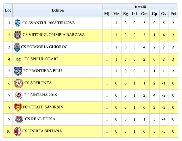 Etapa următoare (20-21 septembrie): FC Sântana – Șofronea, Horia – Olari, Unirea Sântana – Săvârșin, Pilu – Bârzava, Târnova – Ghioroc.