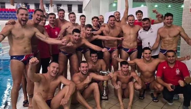 Arădeanul Levente Vancsik (primul din stânga jos) a contribuit la succesul CSM-ului cu trei goluri, orădenii deținând, așadar, toate cele trei trofee interne în poloul românesc: titlul de campioană, Cupa și SuperCupa României.