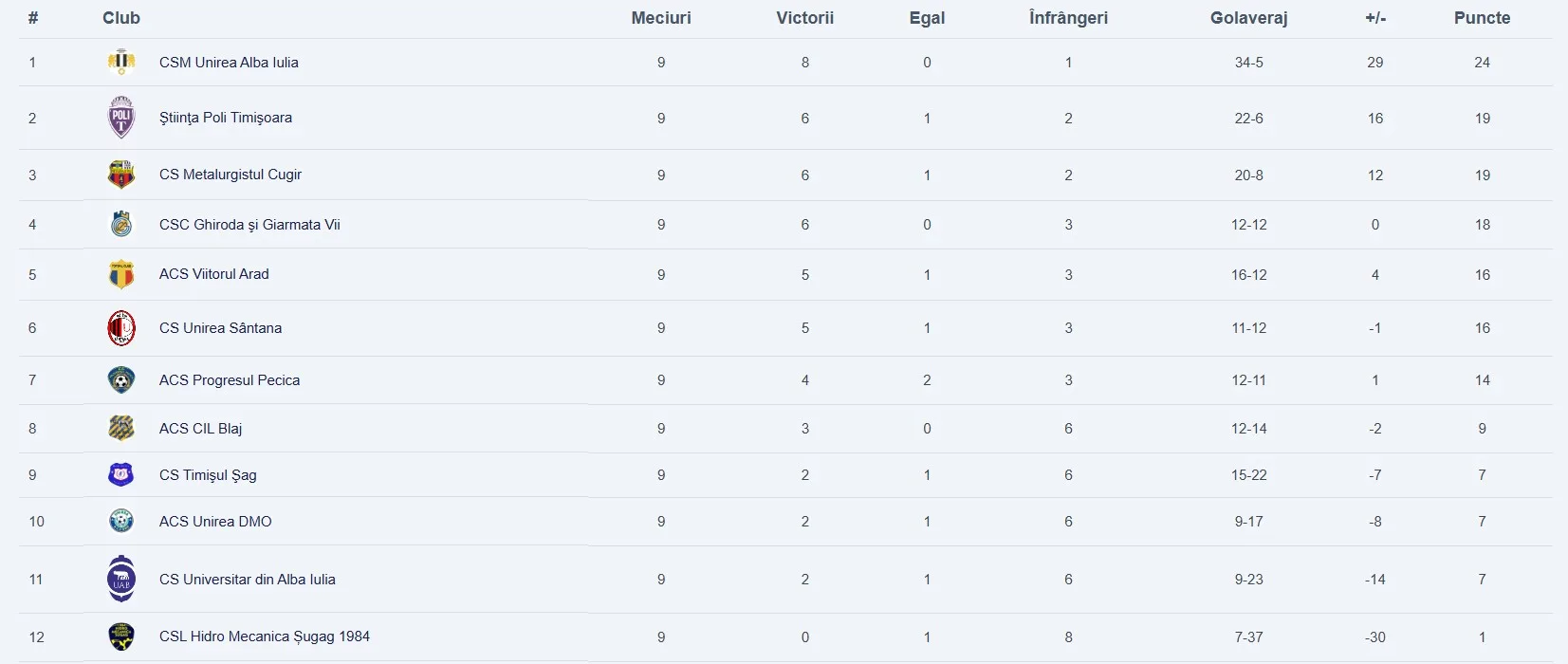 Etapa următoare (24-25 octombrie): Viitorul – Cugir, Pecica – Ghiroda, Șag – Blaj, Unirea Alba Iulia – Poli, Hațeg – Universitar Alba Iulia, Șugag – Sântana.