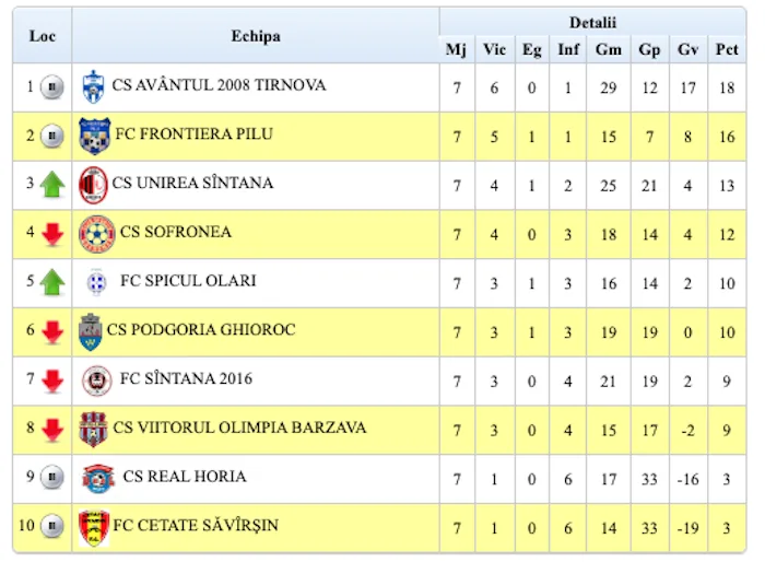 Etapa următoare (1-2 noiembrie): Ghioroc – Horia, Unirea Sântana – Fc Sântana, Târnova – Pilu, Șofronea – Săvârșin, Bârzava – Olari.