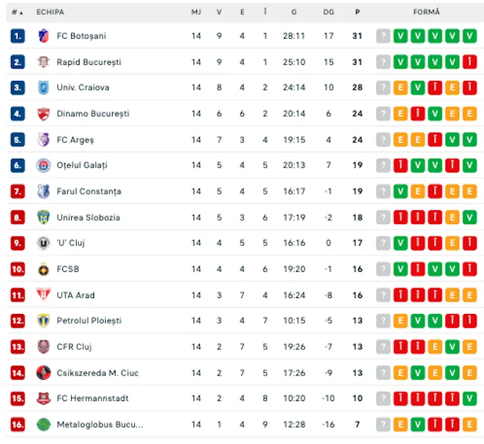SuperLiga, etapa a 14-a: Botoșani și Rapid își continuă cursa în vârful clasamentului, moldovenii ajung la 6 succese consecutive!