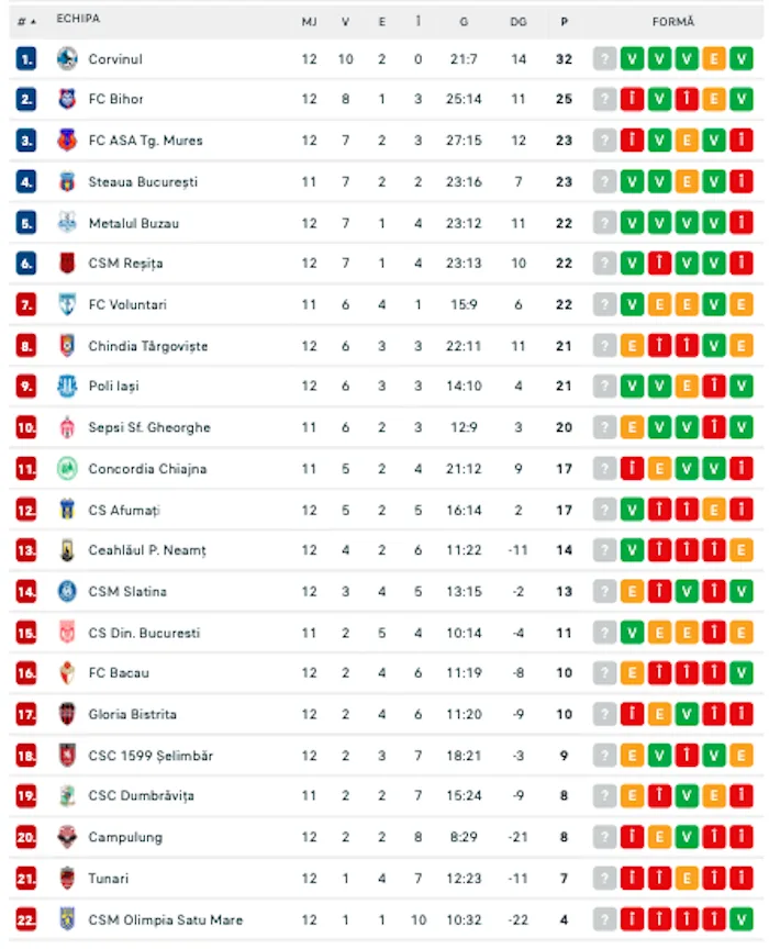 Liga a II-a, etapa a 12-a: Corvinul și Reșița iau puncte mari în deplasare, ASA-ul cade la Afumați!