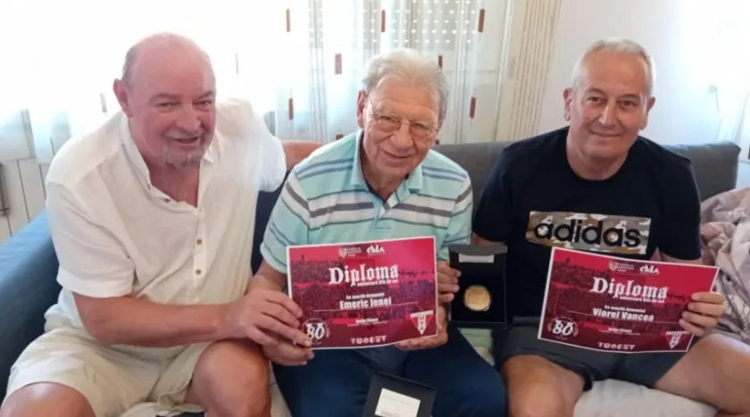 În luna august a acestui an, o diplomă din partea Consiliului Județean Arad, emisă cu ocazia Expoziției ”UTA – 80 de ani. Istoria fotbalului arădean de la începuturi la consacrare” a ajuns și la Emeric Jenei. Cel care i-a dus-o a fost Gyuri Vaczi, fostul atacant al UTA-ei din anii 80 și fost președinte al „Old Boys UTA”.