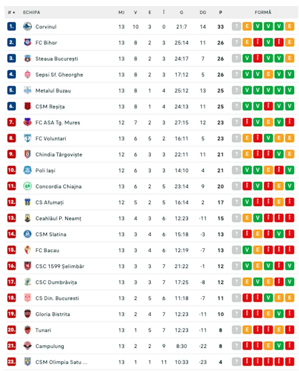 Liga a II-a, etapa a 13-a: Tunariul a smuls un punct la Oradea, Reșița o bate pe Chiajna, Corvinul – ținută în șah de Voluntari!