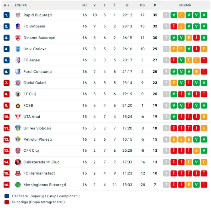 SuperLiga, etapa a 16-a: Rapidul rămâne singură în fotoliul de lider, „poker” dinamovist cu pentru un loc pe podium!