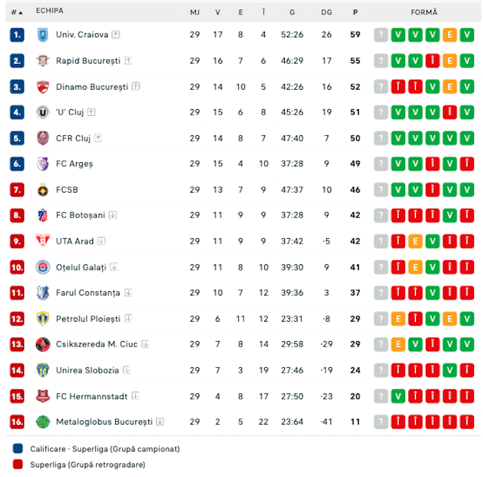 SuperLiga, etapa a 29-a: Puncte rapidiste pe nocturna Sloboziei, avansul Craiovei rămâne de 4 puncte!