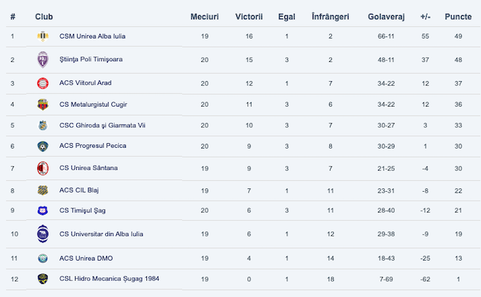 Etapa următoare (20-21 martie 2026): Cugir – Viitorul, Giarmata – Pecica, Universitar Alba Iulia – Unirea DMO, Blaj – Șag, Poli – Unirea Alba Iulia, Sântana – Șugag anulat (3-0).