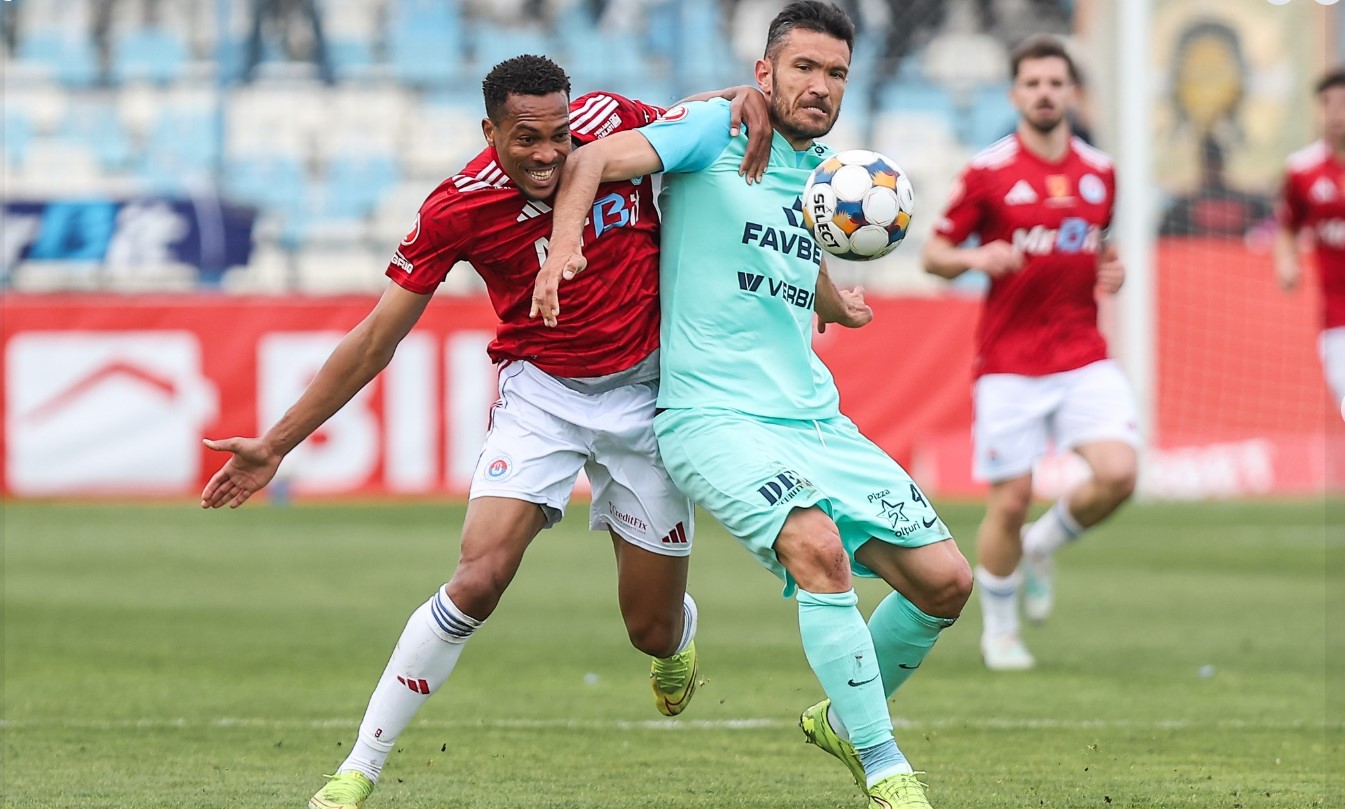 Min. 90+5: Cristian Moldoveanu mai e chemat o dată la margine, la monitorul VAR, revine, îi anulează „galbenul” lui Alomerovic și îi dă cartonașul roșu