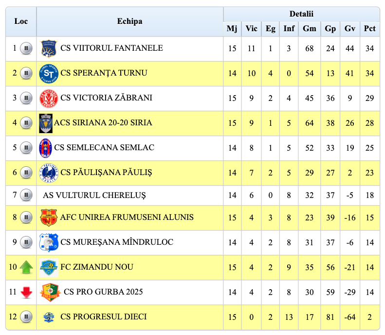 Liga a VI-a, etapa a 17-a: Turnu o bate în derby pe Fântânele, Zăbrani și Șiria II își consolidează locurile promovabile