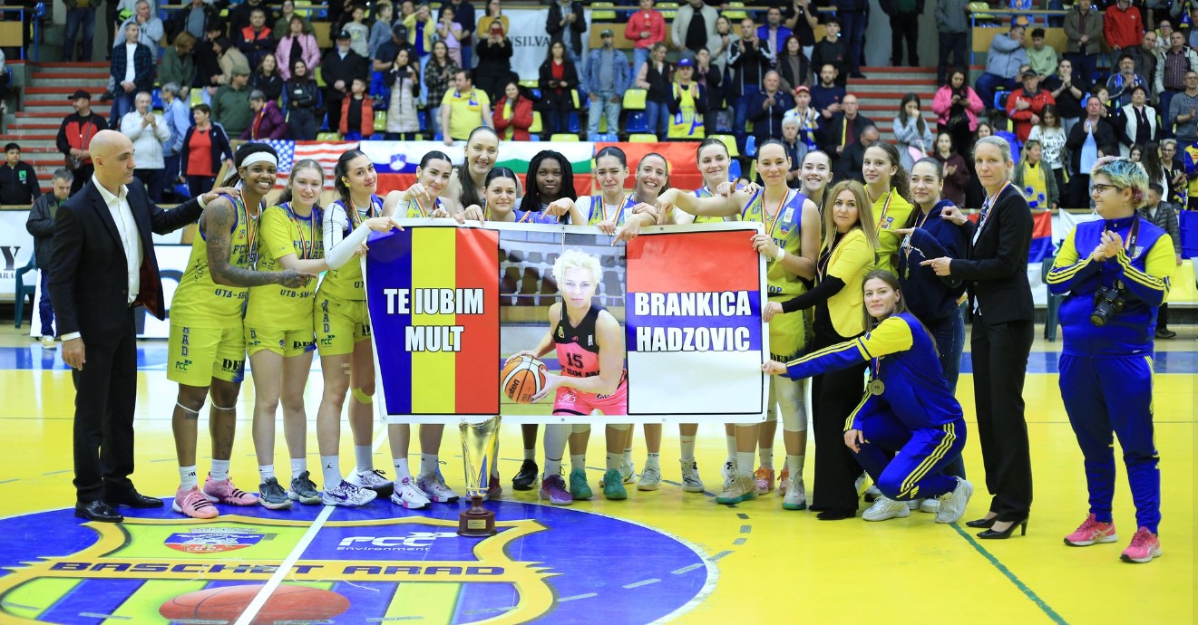 Pe parchet, imediat după festivitatea de premiere, baschtebalistele în galben-albastru au desfășurat un banner cu poza Brankicăi Hazdovic, cu mesajul: ”Te iubim mult!” și trofeul pentru locul 3 sub el. Câteva jucătoare au avut lacrimi pe obraz, altele au încercat să zâmbească chiar la îndemnul jucătoarei din Serbia, care le-a rugat să fie optimiste, așa cum e ea de la începutul luptei pe care o duce cu teribila maladie.